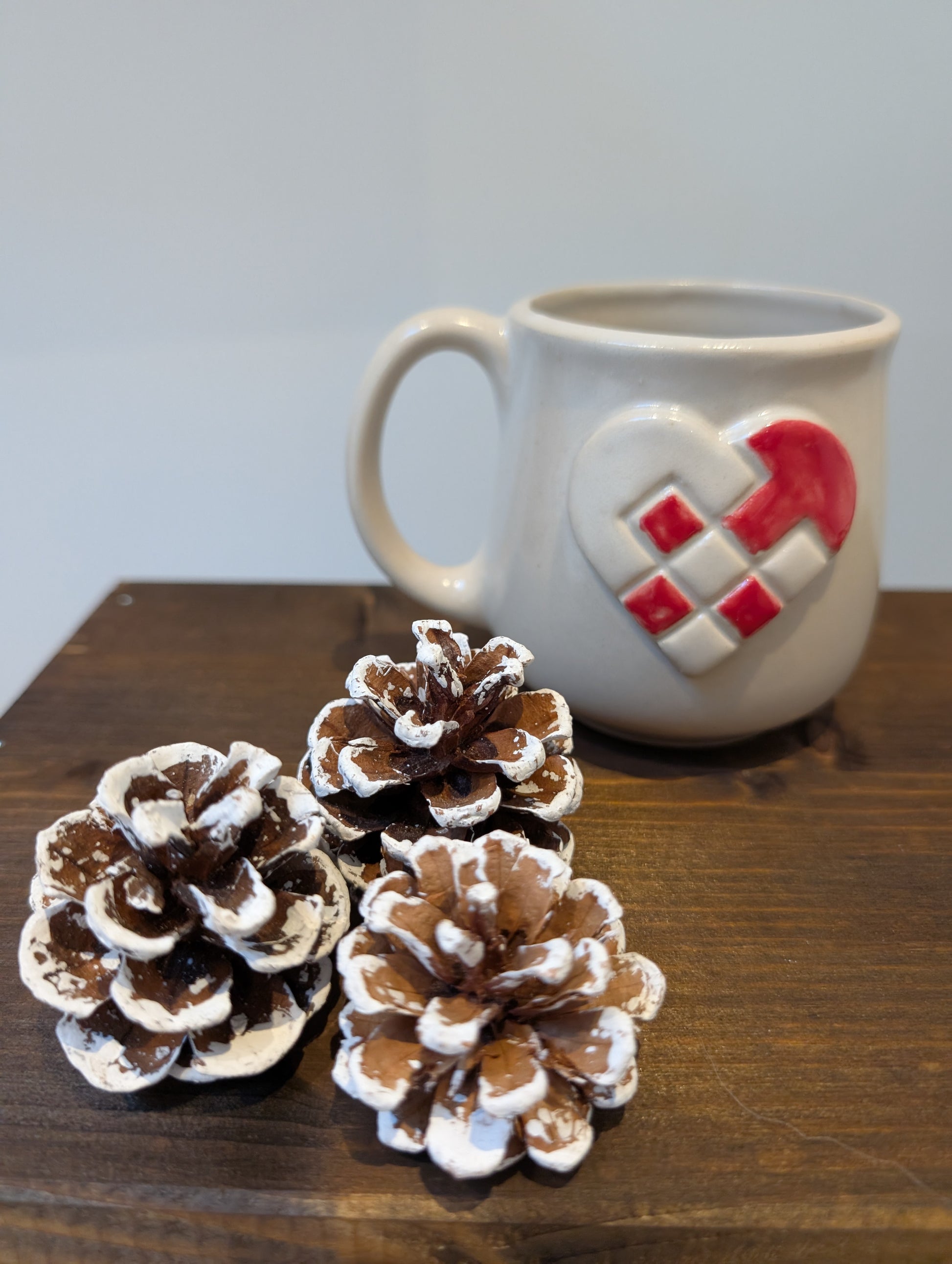Fin mindre julekop med hank. Naturligvis i stentøjsler. Dekorationen er det traditionelle julehjerte.